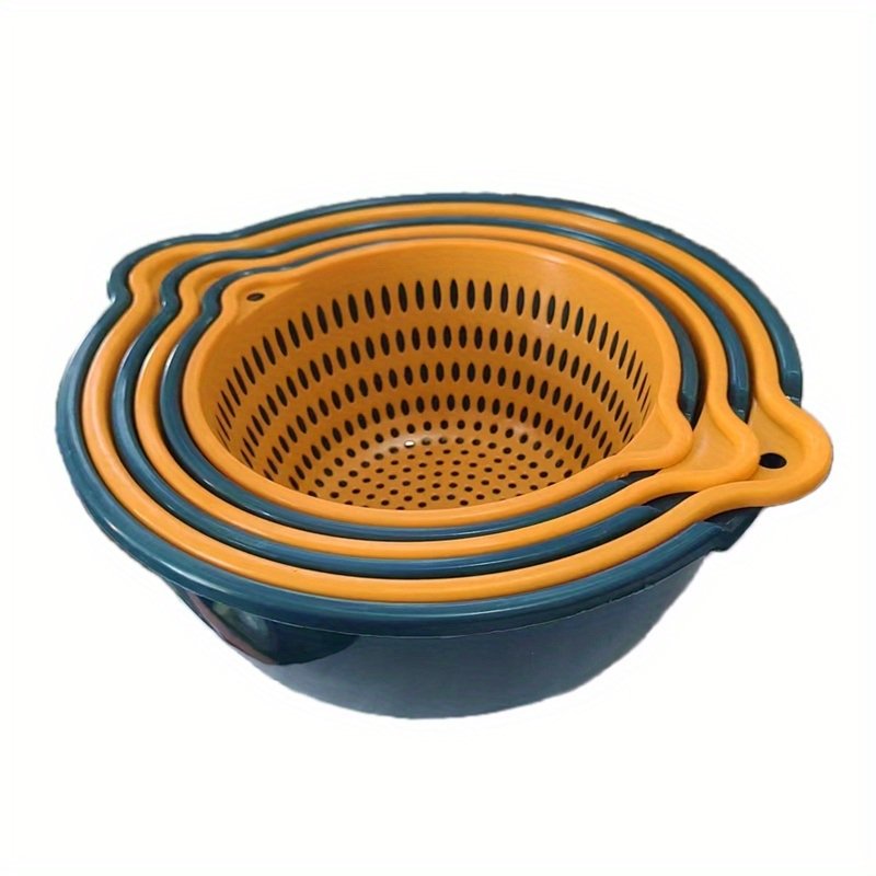 Home > 6pcs Household Drain Basket Set; Plastic Double Layered Kitchen Food Strainer Fruits Vegetable Washing Basket; Stackable Drain Bowls For Cleaning Wash